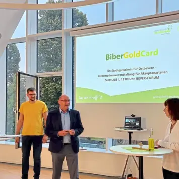 Schon im Spätsommer nahm das neue Projekt mit dem Titel „Biber-Gold-Card“ des Vereins „Wirtschaft Ostbevern“ und der Wirtschaftsförderung der Gemeinde Fahrt auf. Die Idee dahinter? Als neues Zahlungsmittel soll die kleine grüne Karte mit dem goldenen Aufdruck die Kaufkraft in der Bevergemeinde halten, im besten Fall sogar noch steigern.